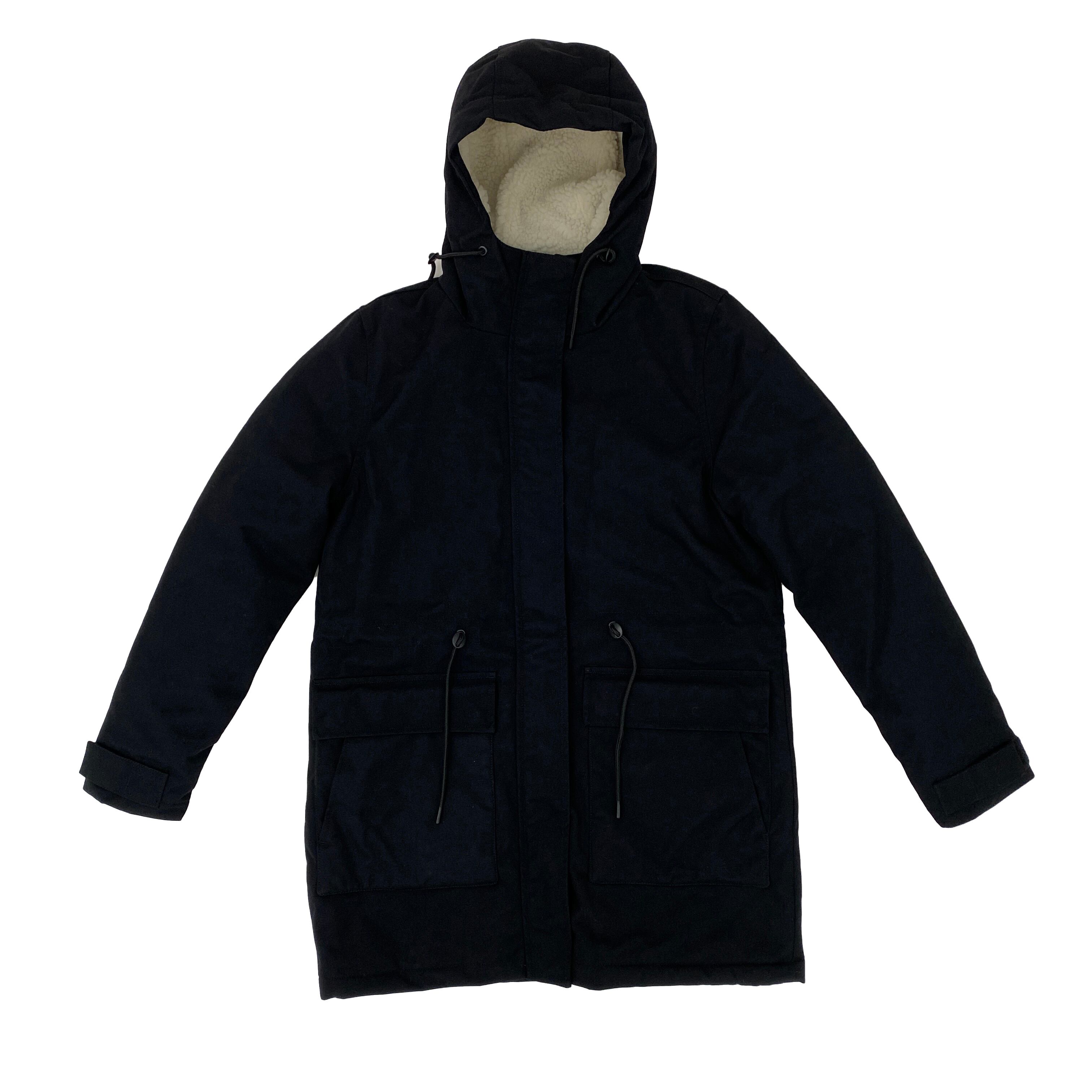 SELFHOOD Nylon Parka Jacket with Pockets and Teddy Lining:Black