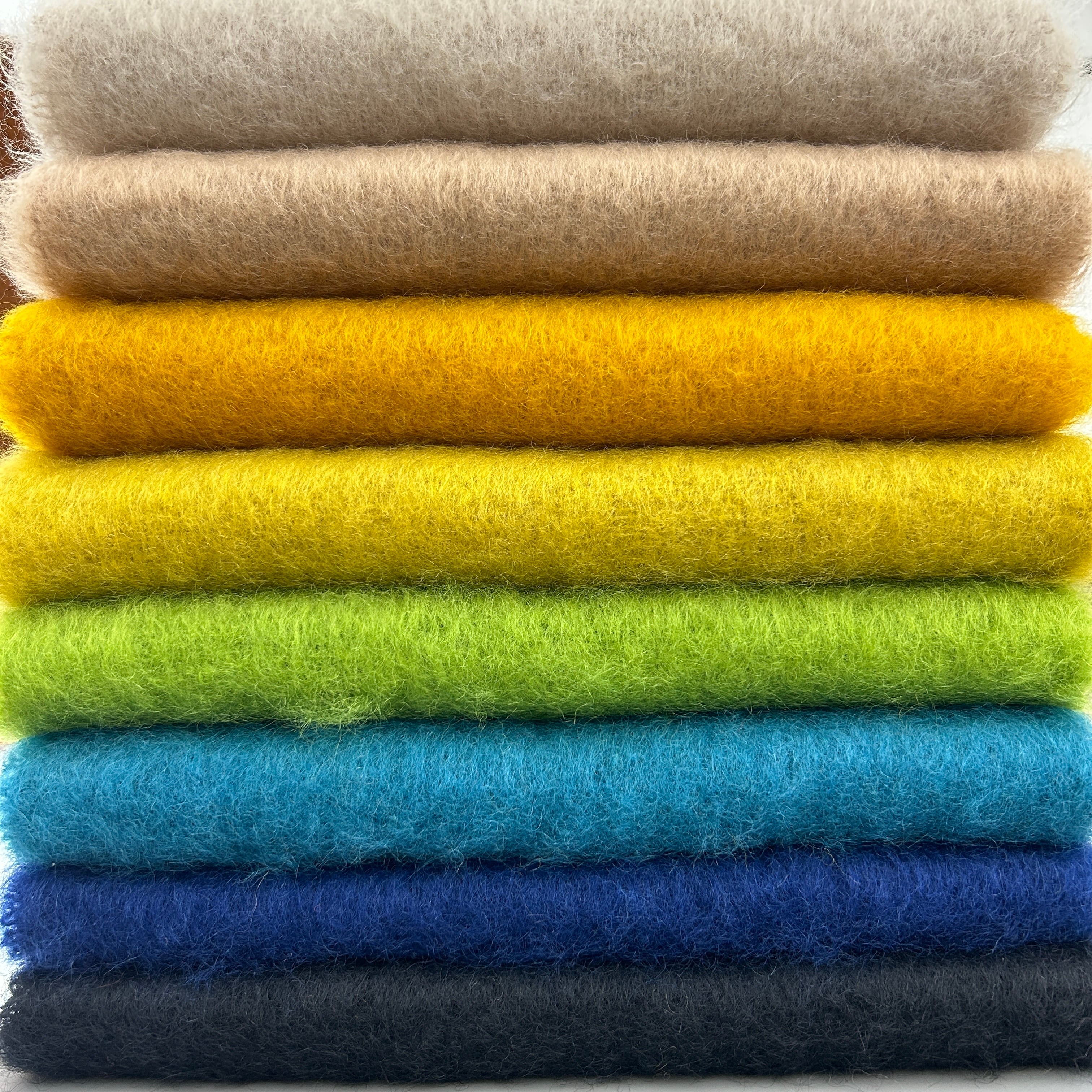 製品に使用される原糸は、繊維市場の中でも優れた品質を誇る素材で、インターナショナルモヘヤ協会とインターナショナルウールセクレタリアからも長年にわたりバックアップを受けています。 また、効率化のため針金による起毛工程が一般的になってしまった現在でも、古くからの伝統的な製法としてアザミの実による起毛を地元の農家と提携して守り続けています。